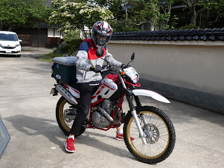 5月20日(土)SSTR本番の日です。朝3時30分に起きだし、午前4時にはホテル出発。外は、やはり雨でした。合羽を着ての出発です。日の出を見る予定の大須海岸までは、5分もかかりません。他のSSTRを目指す方も見かけませんでした。同じ職場の後輩Wさんが、今年は、このSSTRに付き合ってくれることになっています。彼は250ccのセローでの参加です。私たちと違って、午前1時に起きて、二本松から大須海岸に向かってきました。雨で朝来るのは大変だったと思います。若さです。